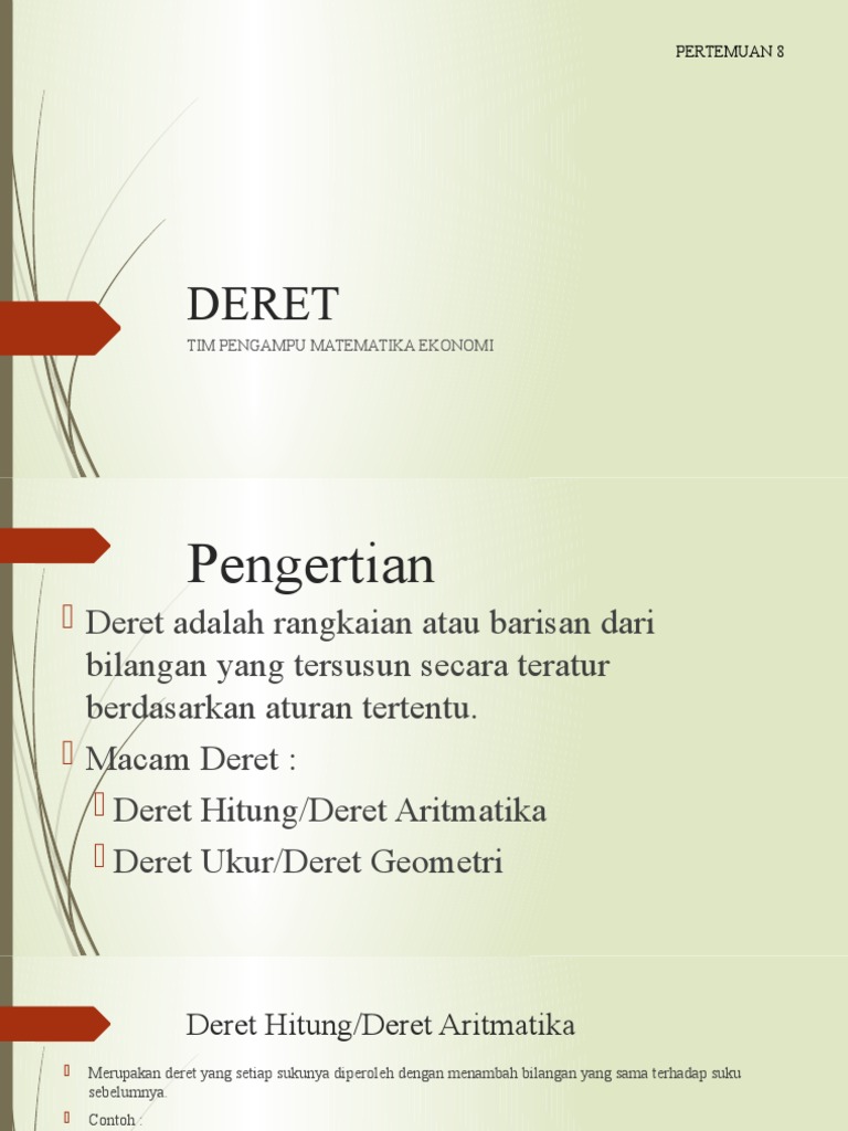 untuk "Deret Matematika Ekonomi / Matematika Ekonomi Bagian 1 Deret Ppt Download - Deret ukur dan deret hitung."