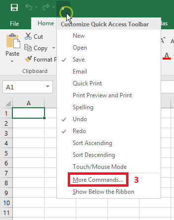 Jelaskan cara menambahkan ikon ke dalam baris quick access toolbar 4.